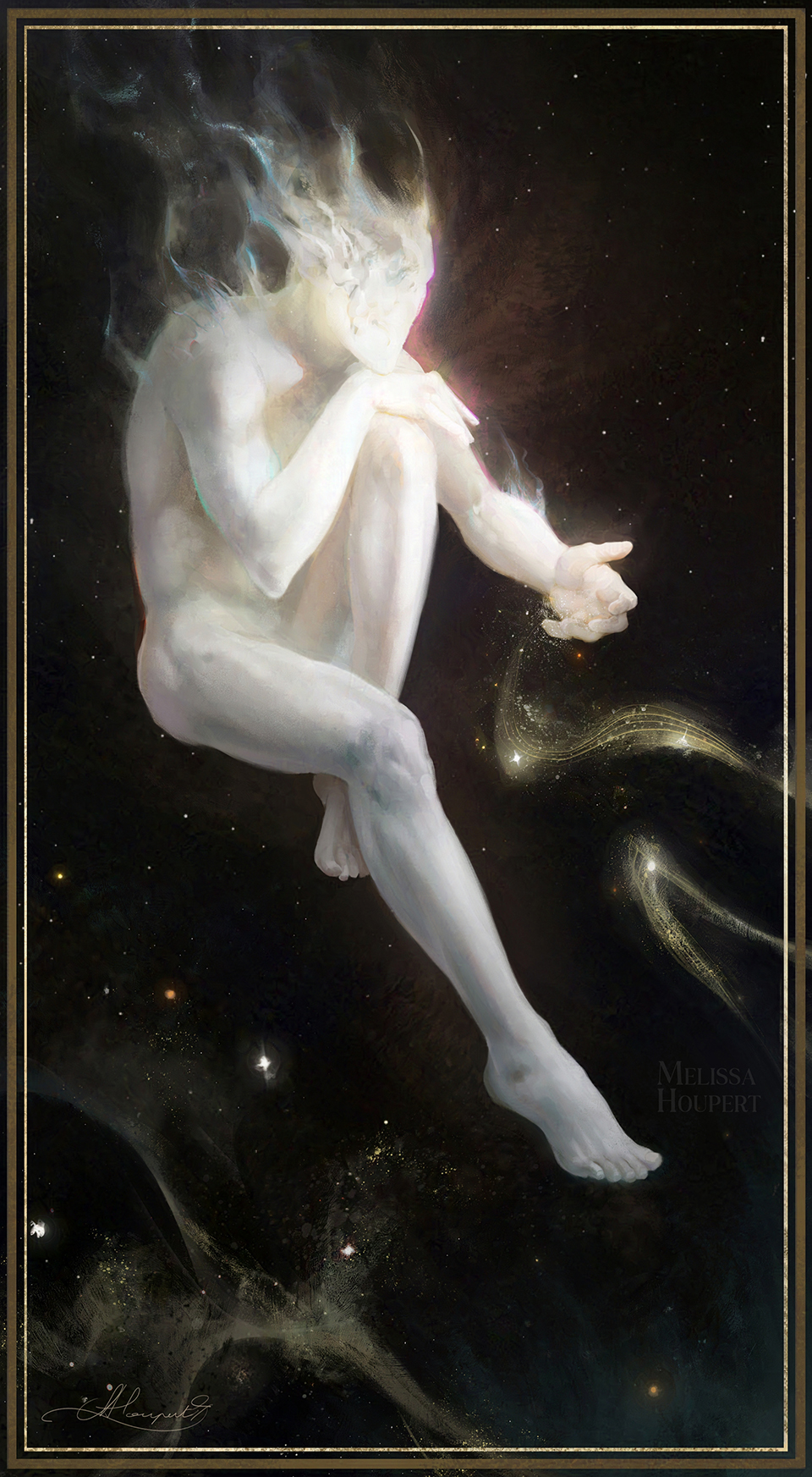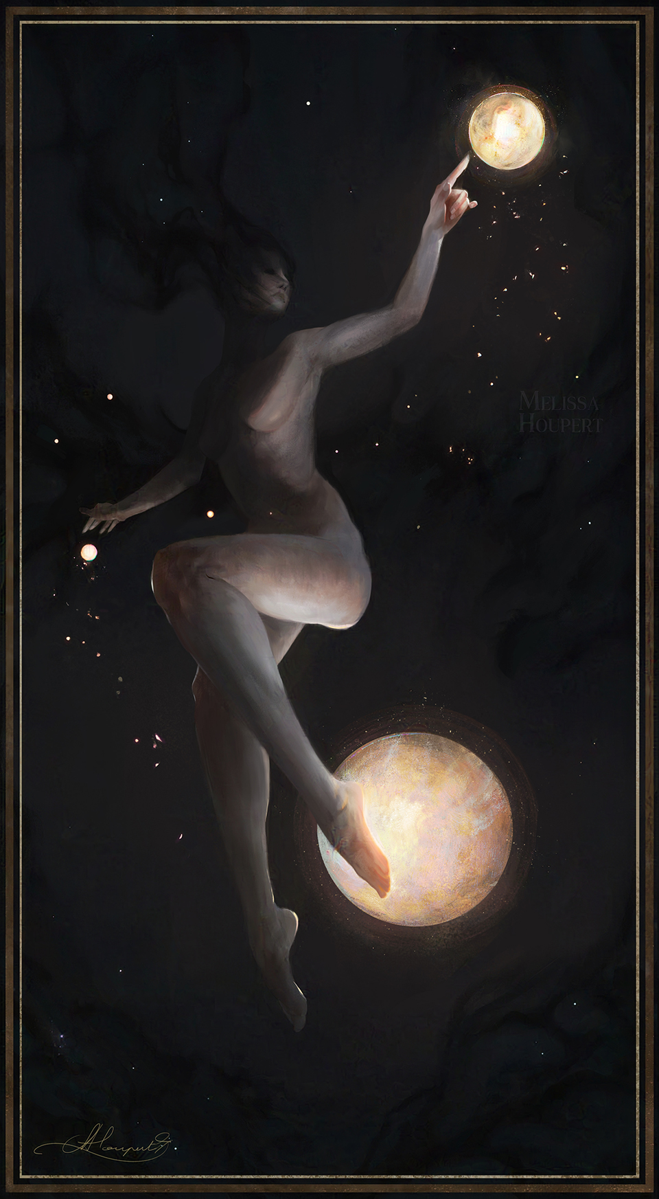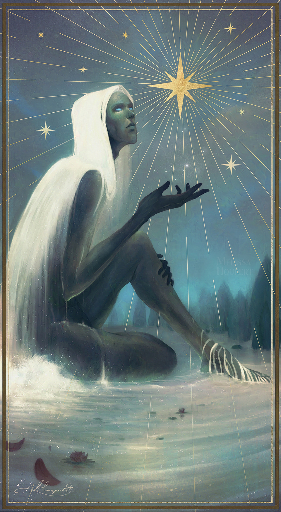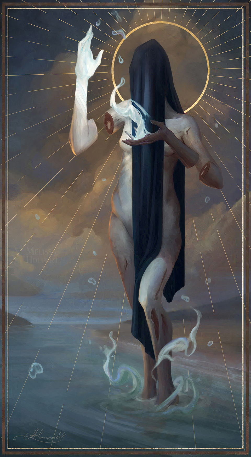 Music is deeply tied to my artistic practice, and is to me a source of a lot of inspiration. All of the artists who composed for Mirror Arcana are people I listened to during my work on the cards. Some have their own tarot practice, others don’t, but all of them were able to choose a card that spoke to them to help them create their musical accompaniment. And I’m immensely grateful for their presence and confidence in this project.